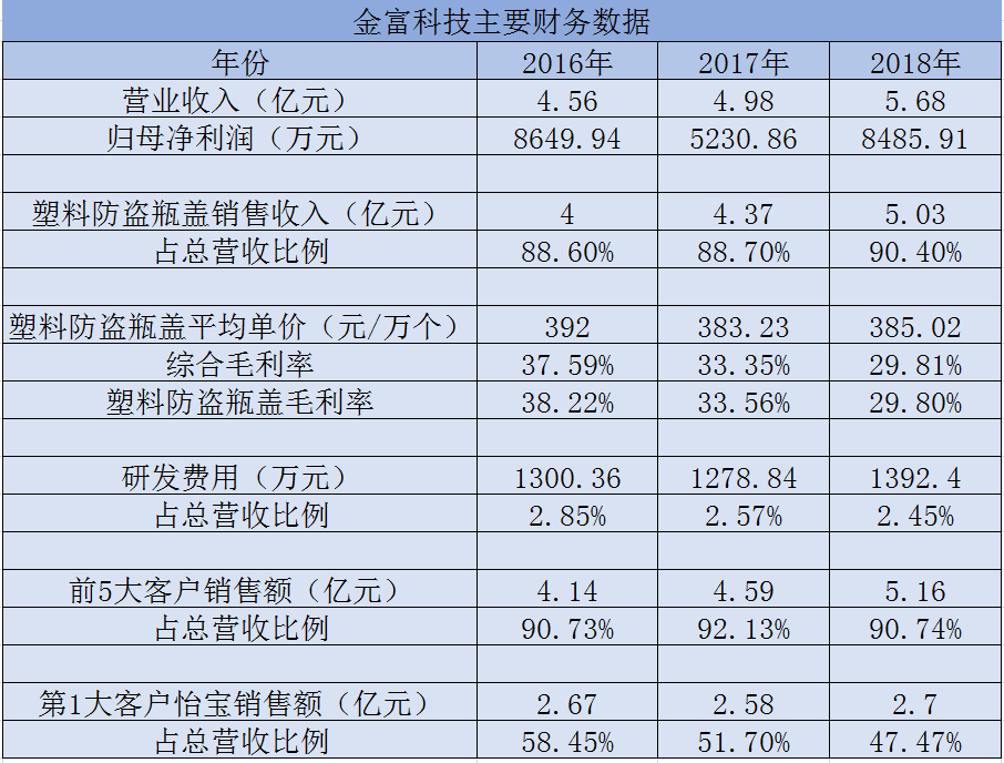 金富科技IPO背后:“瓶盖”撑起九成业绩